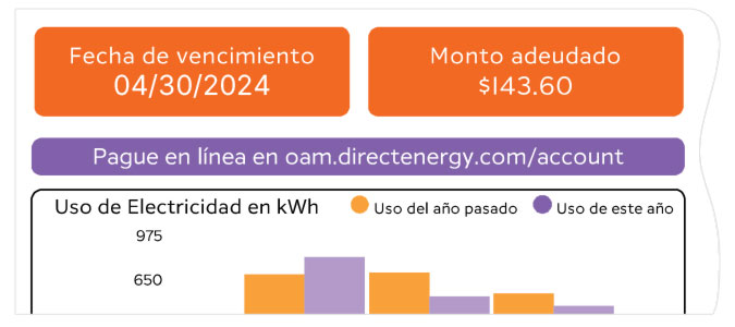 Usa la app de Direct Energy (disponible solo en inglés) para fácilmente pagar tu factura, manejar tu cuenta, mantenerte al tanto de tu consumo, referir amistades, y mucho más.